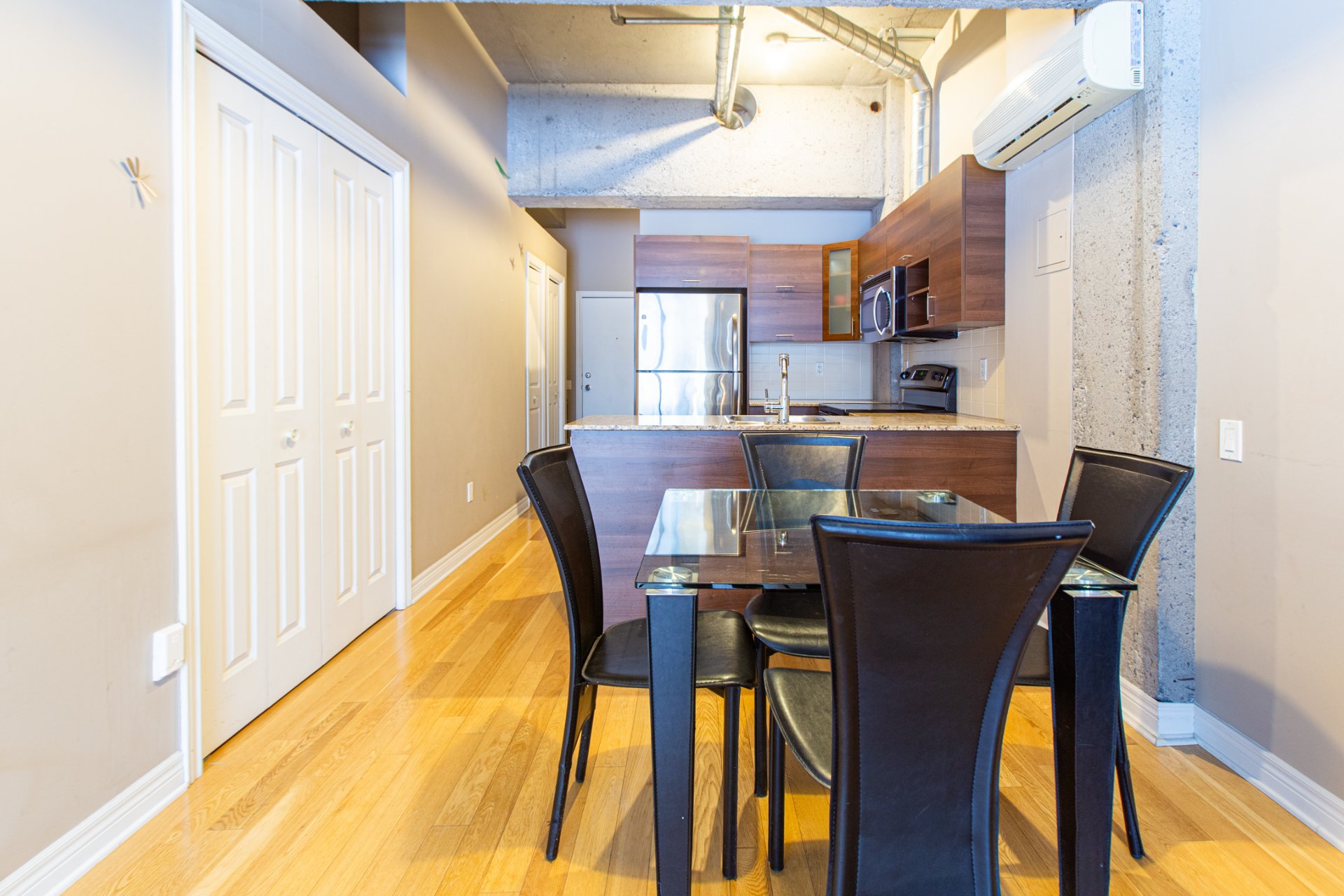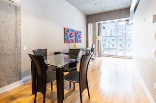 Magnifique condo à aire ouverte avec hauts plafonds, situé au coeur du Quartier international, à deux pas du Vieux-Montréal, de McGill, de l'UQAM, du quartier chinois, de la Place des Arts et du métro Square-Victoria. Il comprend des planchers de bois, la climatisation murale et des espaces de rangement. Profitez d'aménagements de luxe: terrasse sur le toit avec piscine d'eau salée chauffée, barbecue et vue panoramique, salle de sport, sauna, salle de jeux, salon et sécurité 24h/24. Accès à pied aux boutiques, restaurants, universités et au Vieux-Port.